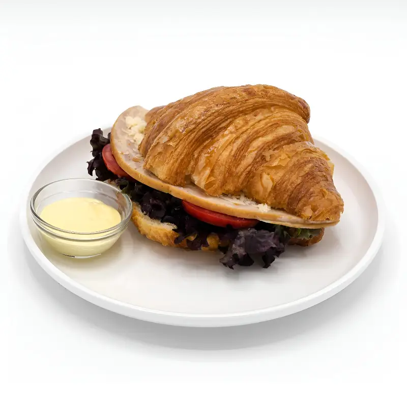 کروسان، ژامبون، کاهو فرانسوی، گوجه، پنیر چدار
